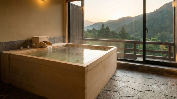 木風呂の中に椅子?