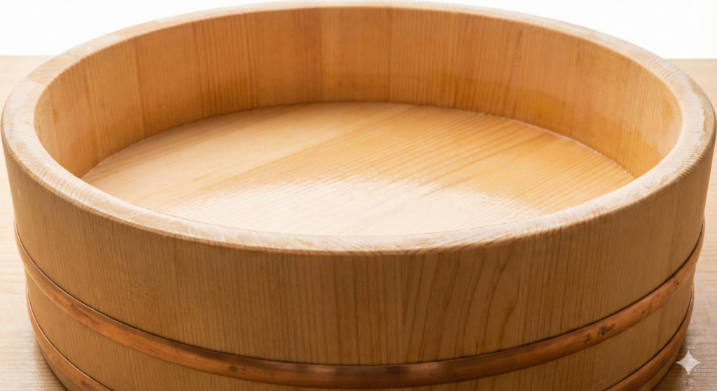 A sushi tub made from sawara is particularly well suited for this purpose. The natural properties of sawara help absorb and release moisture appropriately, allowing sushi rice to maintain an ideal texture.