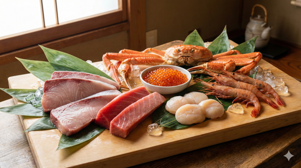 Fish such as yellowtail and tuna develop rich fat, while crab and shrimp offer deep, concentrated umami. Winter is widely regarded as the season when seafood stores the most nutrition and reaches its peak flavor.