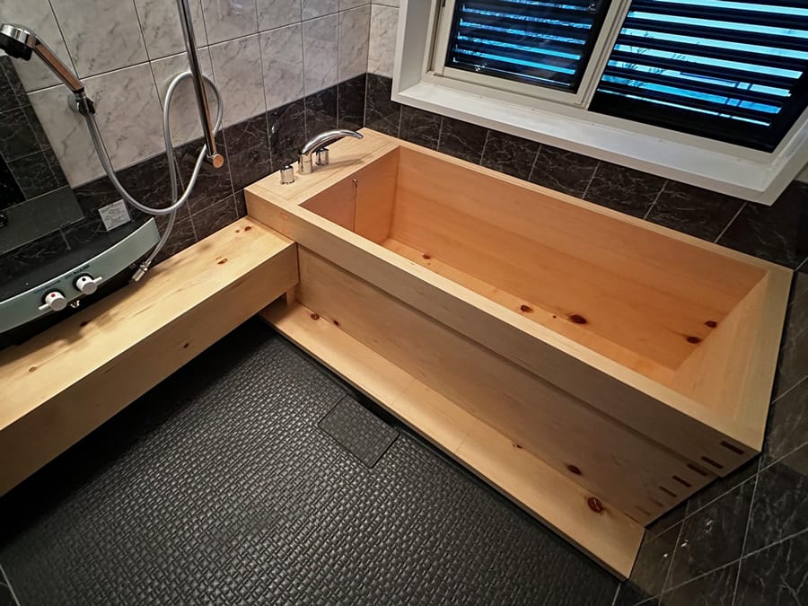 桧風呂を設置した状態桧風呂サイズ:1,240×730×514(深さ)